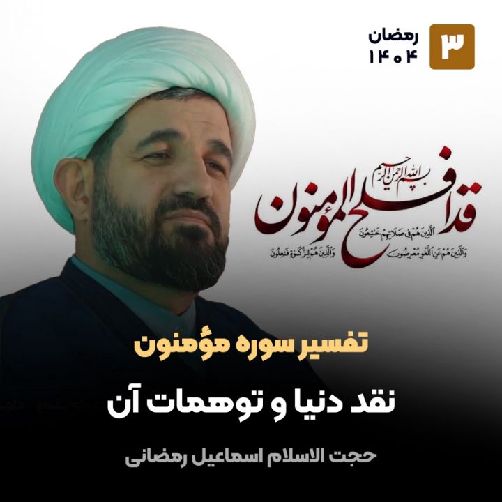 سخنرانی حجت الاسلام اسماعیل رمضانی با موضوع «تفسیر سوره مومنون»، جلسه سوم: نقد دنیا و توهمات آن، سال 1404