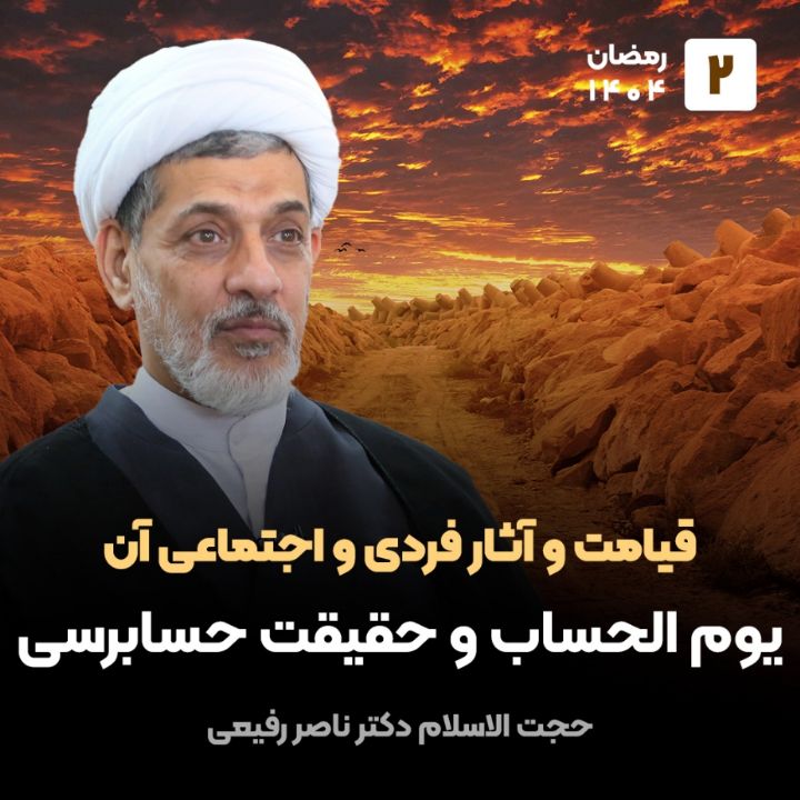 سخنرانی حجت الاسلام دکتر ناصر رفیعی با موضوع "قیامت و آثار فردی و اجتماعی آن"، جلسه دوم: یوم الحساب و حقیقت حسابرسی، سال 1404